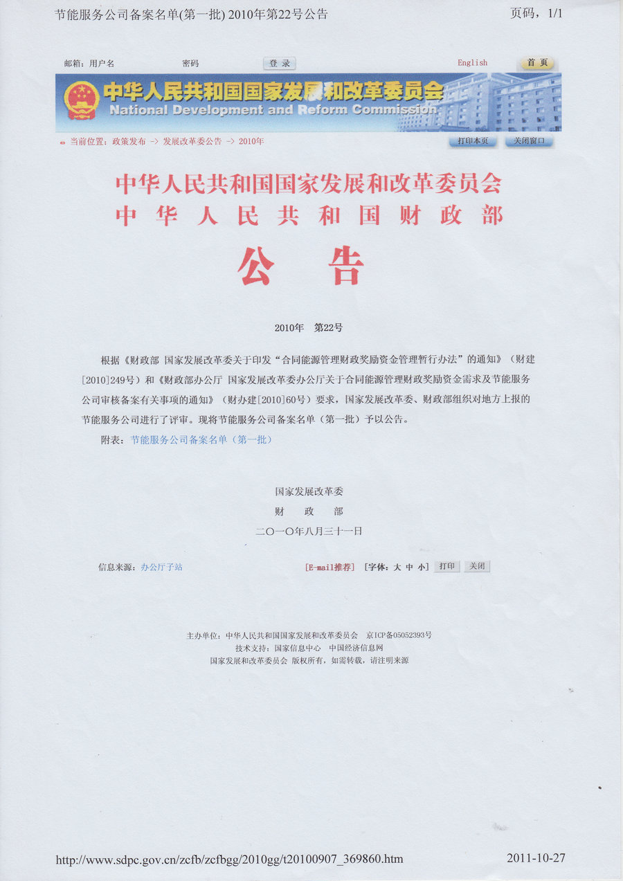 我產(chǎn)品公司北京柏斯頓智能科技獲發(fā)改委節(jié)能服務(wù)公司審批