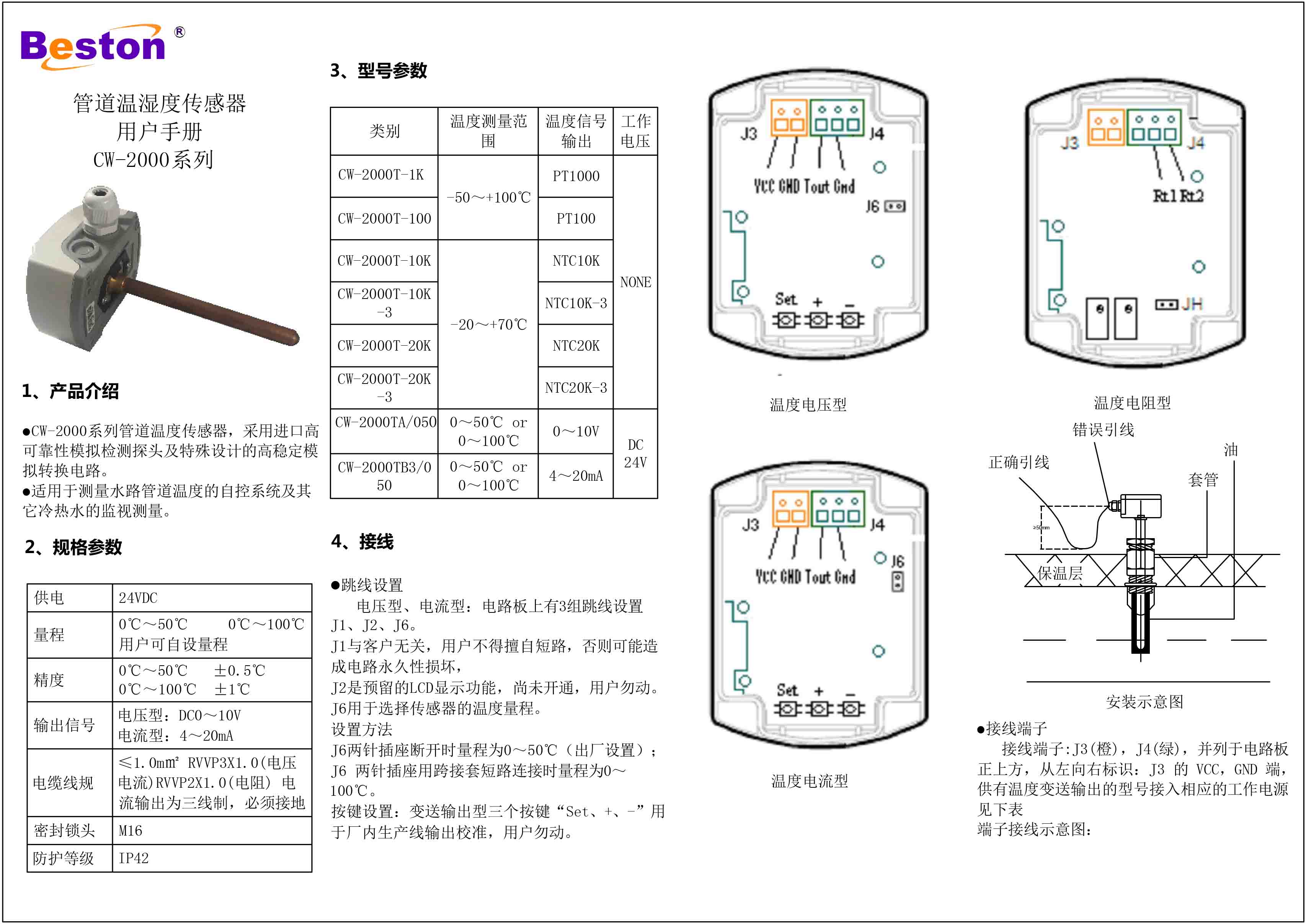 CW-2000管道溫濕度傳感器